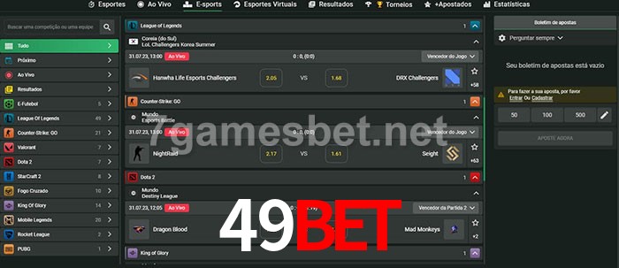 O 49Bet oferece uma grande seleção de opções de apostas em e-sports com probabilidades competitivas
